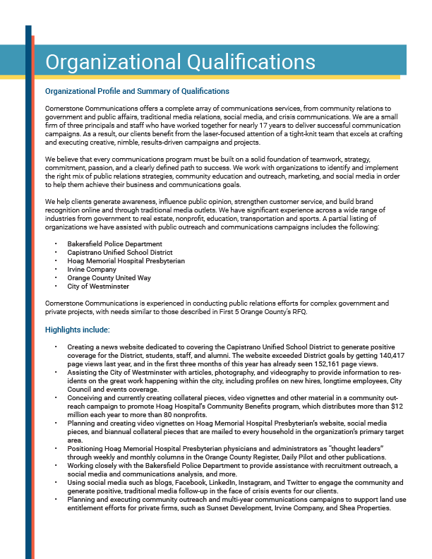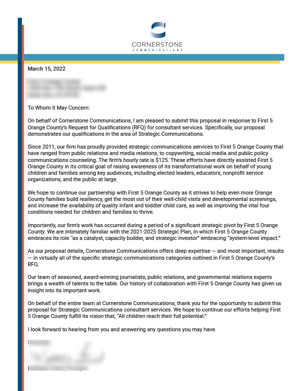 First 5 Orange County RFQ for Cornerstone Communications 2022