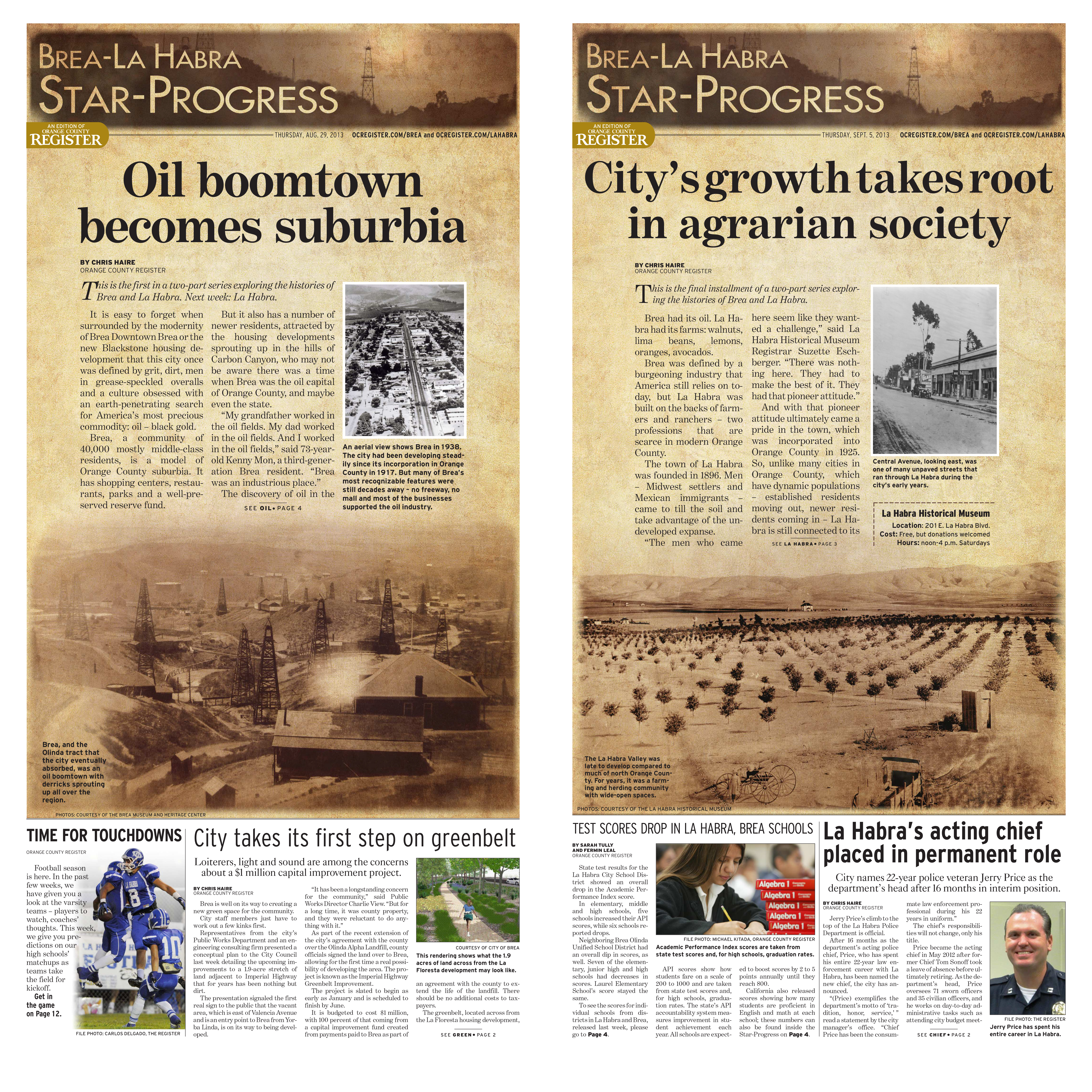 A selection of my Cover Designs for The Brea-La Habra Star Progress, Placentia News Times, and The Pier, Community Newspapers from when I was a member of The Orange County Register Community News Division. I contributed layouts, photo illustrations and full on illustrations for these covers.