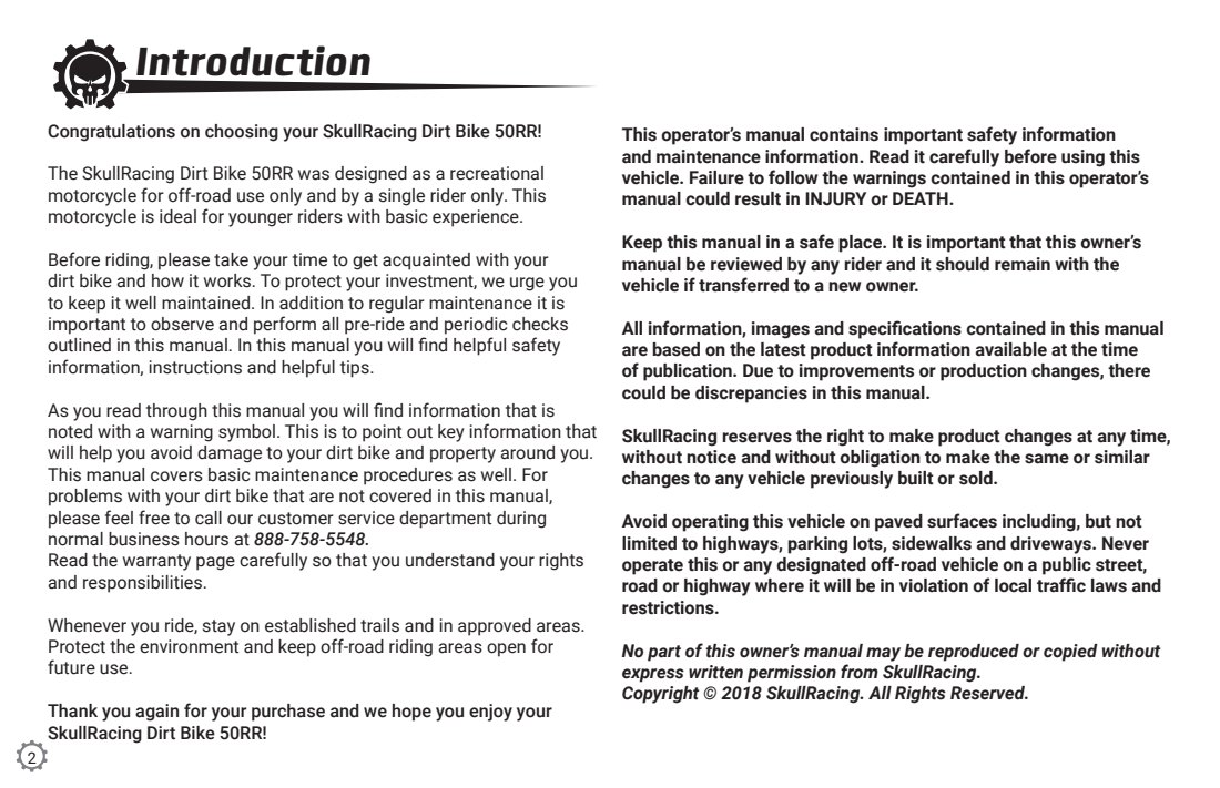 Skull Racing is a small motorsports startup focusing on premium hand-assembled pocket bike products. I started collaborating with them initially as a freelancer and eventually joined the team as effectively the entire media department. I developed graphics, print products and other advertising materials, as well as produced a series of how-to videos for assembly and maintenance of products. The standout project however, was the production of our product instruction manuals.