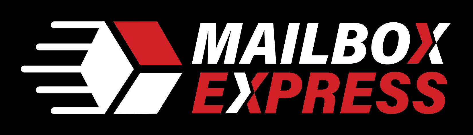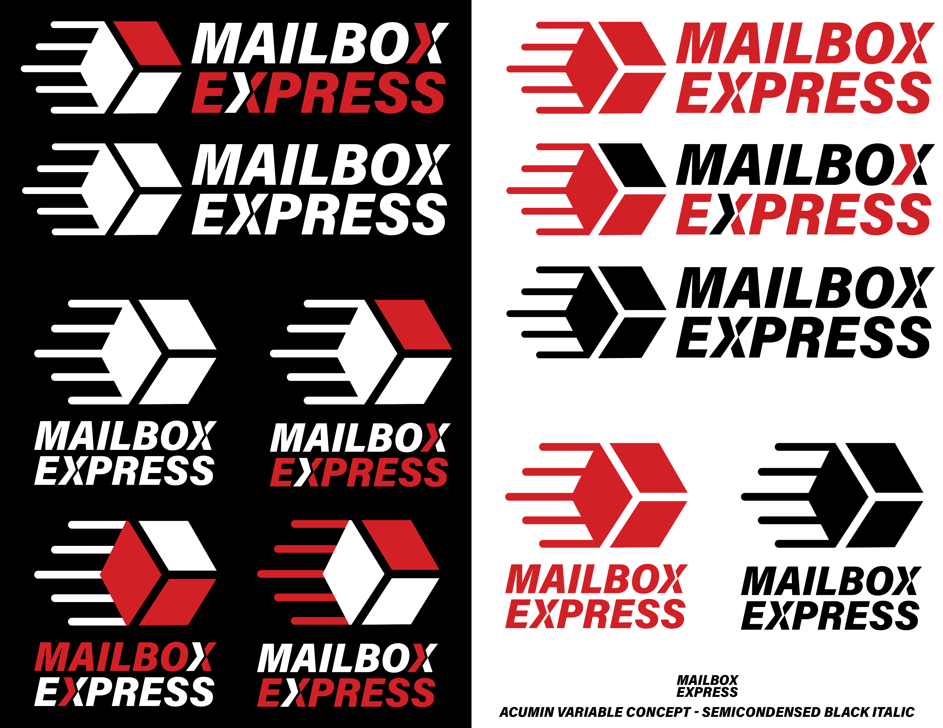 Multiple variations on the Mailbox Express logo in different color schemes for different applications